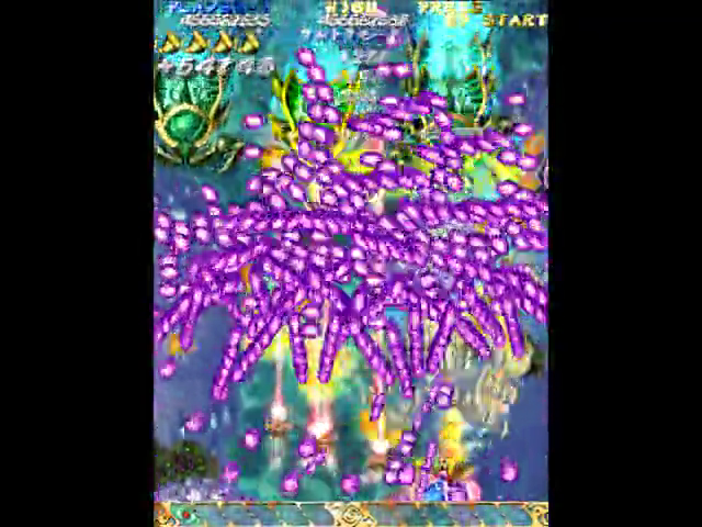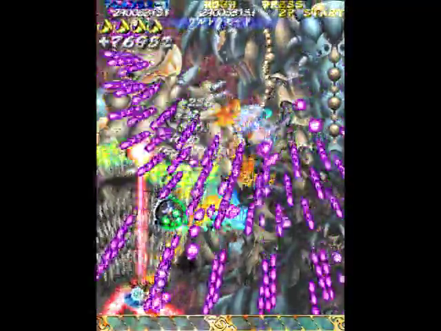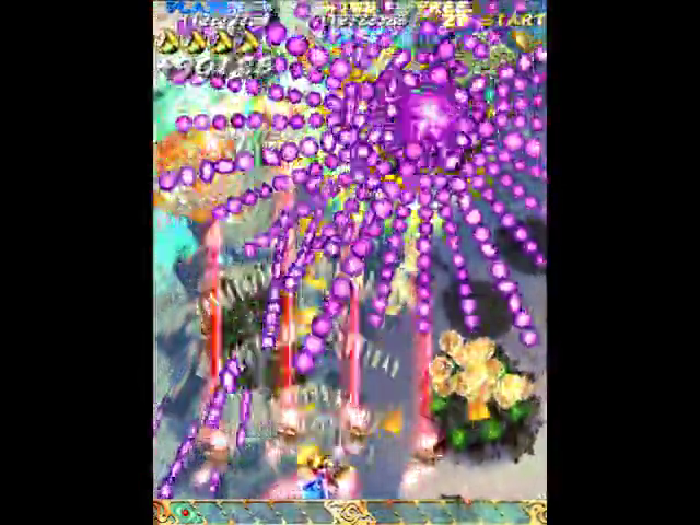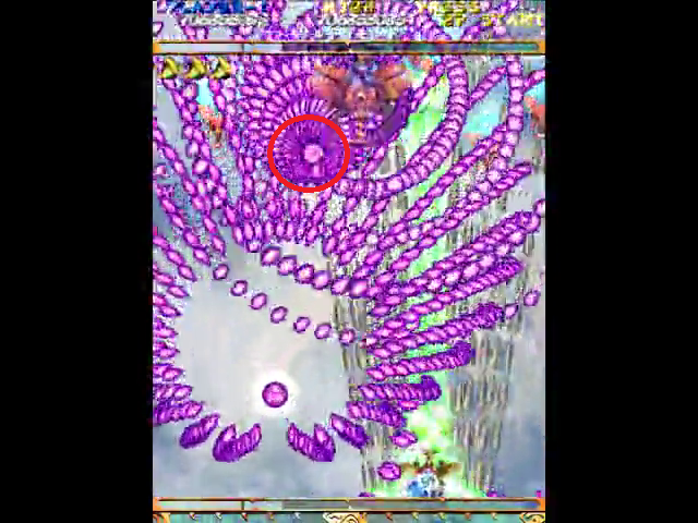 第2は頑張って自機狙いを上部で避ける必要があるが、たまに発狂した撒き方を食らう。こうなったらオートボムもやむなし。ここまでで1ミスしたら捨てゲー。
