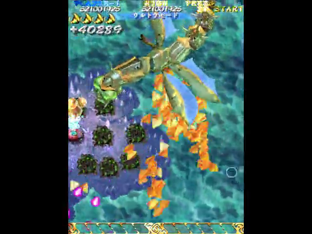 特に中ボス前は鬼。無印と同じく水中の子タガメとテントウを最優先に処理しつつ、低速を封印してレーザーを広範囲に当てて大タガメを速攻するのがコツ。